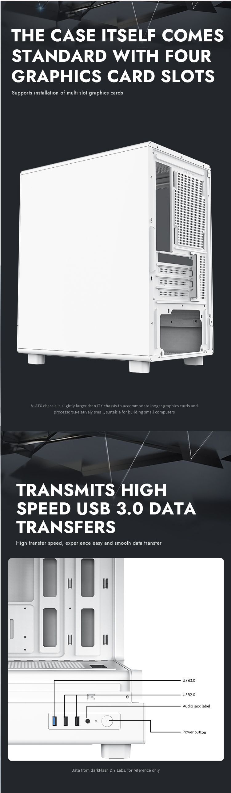 The Darkflash DB330M is a stylish and compact micro-ATX case designed to showcase your build. Featuring a tempered glass side panel and excellent airflow, the DB330M provides a great balance of aesthetics and functionality.